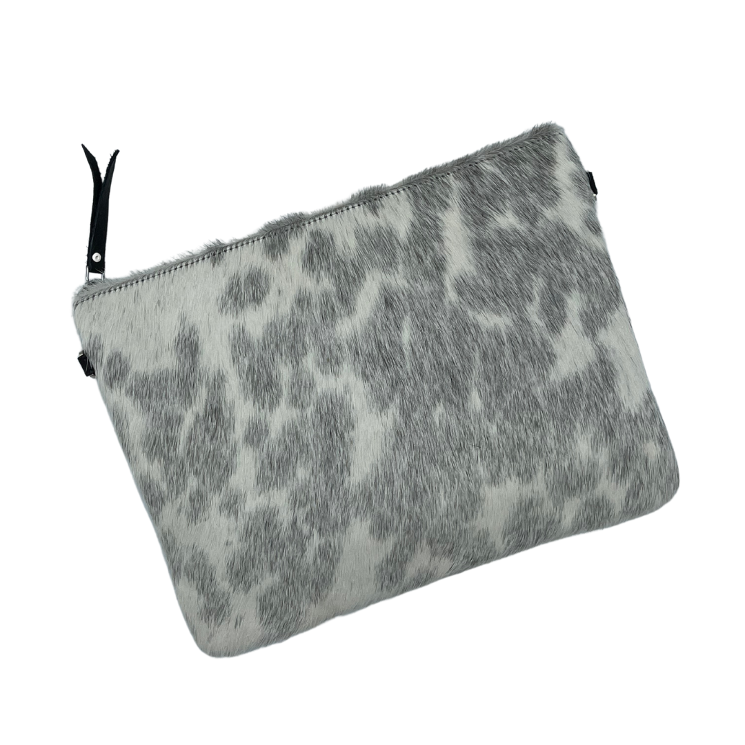 Galloway Grey/White Cowhide Crossbody / Clutch - Large